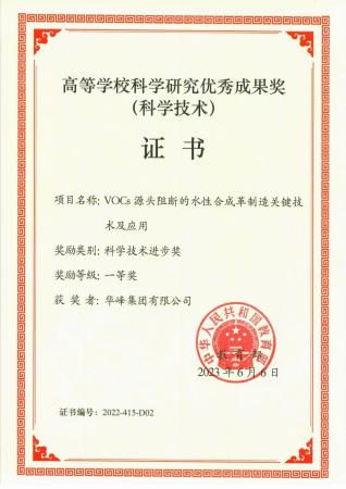 近日,由华峰集团与四川大学联合研发的“VOCs源头阻断的水性合成革制造关键技术及应用”项目斩获教育部2022年度高等学校科学研究优秀成果科技进步一等奖。该奖项由全国高校、同行专家审议选定,分量仅次于国家自然科学奖、国家技术发明奖和国家科技进步奖等三大奖的重要科技奖项。