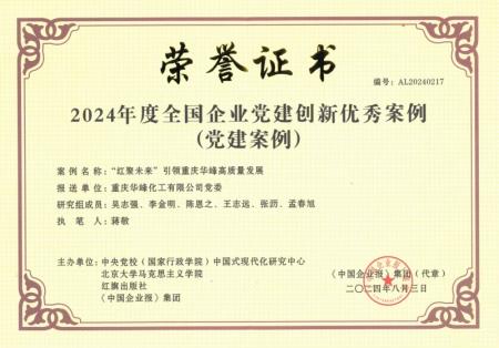 日前,由中央党校中国式现代化研究中心等单位主办的2024全国企业党建(案例)研讨会暨第四届企业党建创新优秀案例发布仪式在北京举办。会议隆重举行了2024年度全国企业党建创新优秀案例发布仪式,重庆华峰党委“‘红聚未来’引领重庆华峰高质量发展”的党建案例成功入围。