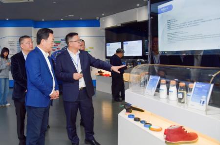在华峰集团总裁林建一的陪同下,李眈陆一行参观了企业形象展厅,听取企业发展历程介绍,详细了解企业知识产权创造、运用、保护工作,悉心询问起企业在推进知识产权工作中遇到的困难和问题。